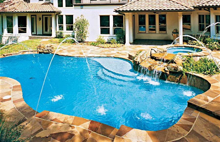 jWe build a wide variety of gunite pools & spas in all sizes, shapes, and styles. From flagstone-covered tanning ledges to custom stone waterfall grottos, gunite’s superb versatility allows you to have a wide choice of decorative elements in your backyard retreat.