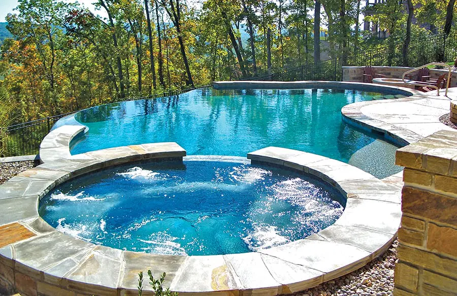 • SpasGunite spa designs, including elevated, interior, and rimflow